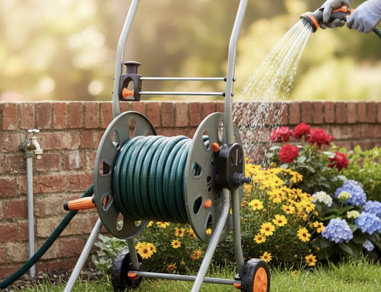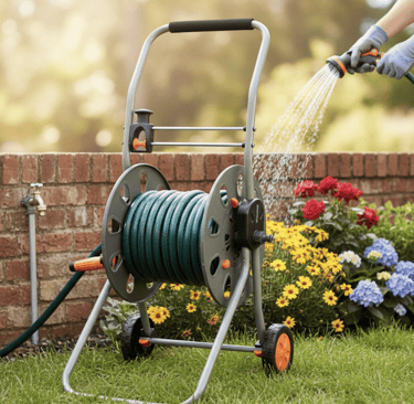 Effortless watering made easy—automatic rewind for tangle-free convenience. Smart, space-saving design—pull, water, and retract in seconds.
